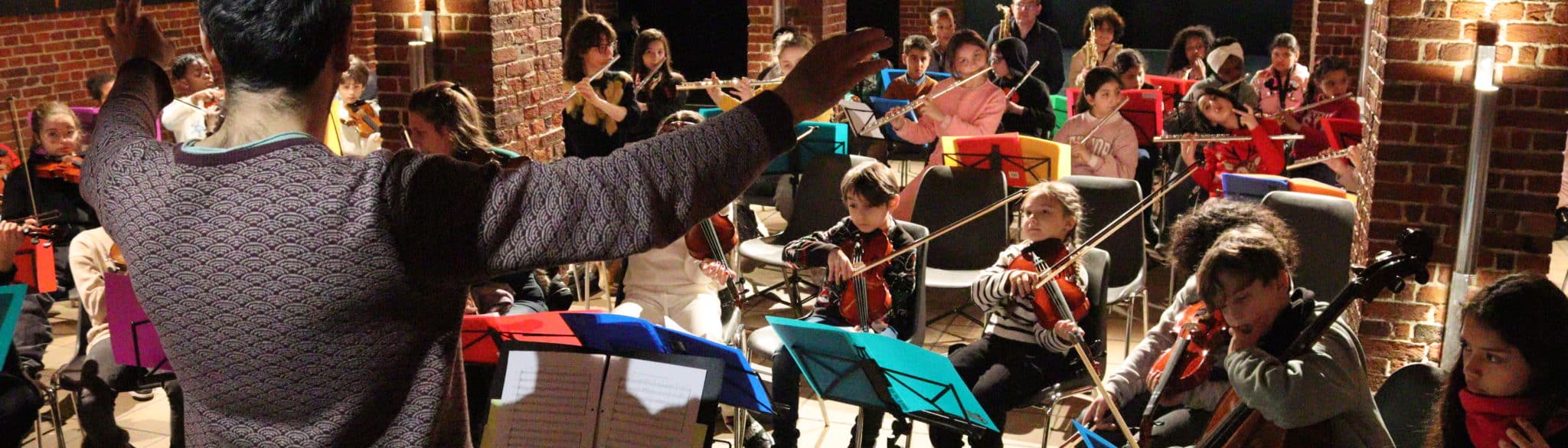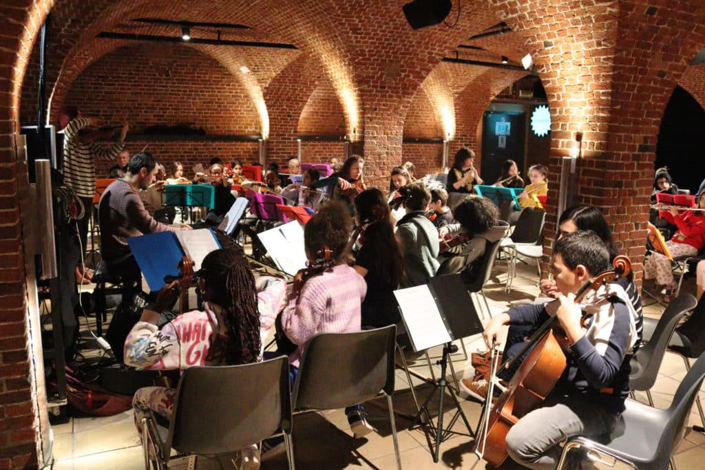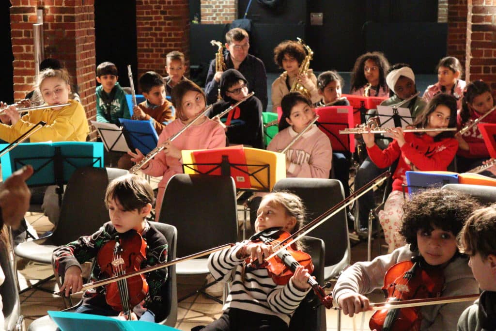 Dans le cadre des orchestres “El Sistema Belgium”, les enfants des écoles de Saint-Gilles,Schaerbeek, Laeken ou Bruxelles-centre, soit une soixantaine d’apprentis musiciens, font l’apprentissage d’un instrument. Encadrés par les musiciens-intervenants de ReMuA, au rythme de deux ateliers par semaine, ces enfants de huit à douze ans apprennent, après l’école, le violon, le violoncelle, l’alto, la clarinette, la flûte ou le saxophone en petits groupes. Ils auront répété toute l’année, afin de vous proposer un concert dédié à un répertoire issu de musiques populaires de transmission orale et de nature festive, qui puise son inspiration dans le Gospel, le Blues, et le Jazz.